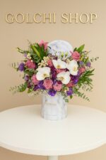 گل‌ها از گذشته تا امروز زبان مشترک انسان‌ها برای بیان احساسات بوده‌اند 🌹✨. هر رنگ و هر نوع گل پیامی خاص در دل دارد و وقتی کنار هم قرار می‌گیرند، یک داستان کامل از عشق، احترام، شادی و زیبایی را روایت می‌کنند. یکی از خاص‌ترین و لوکس‌ترین طراحی‌های گل‌آرایی، همین باکس گل خواستگاری مصنوعی مرمری است که ترکیبی رؤیایی از رزهای صورتی، گل‌های بنفش و ارکیده‌های سفید را در دل خود جای داده است.