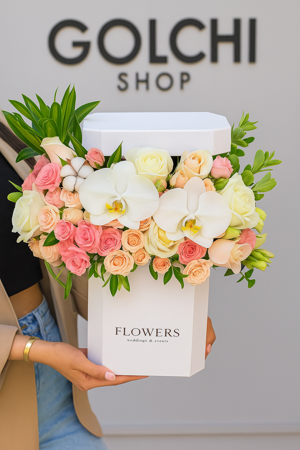 مشخصات این باکس گل خواستگاری : باکسی زیبا و سفید ترکیبی از گل های سفید و زرد و صورتی زیبا