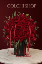 مشخصات این باکس گل خواستگاری : باکس مشکی و گل های رز قرمز زیبا